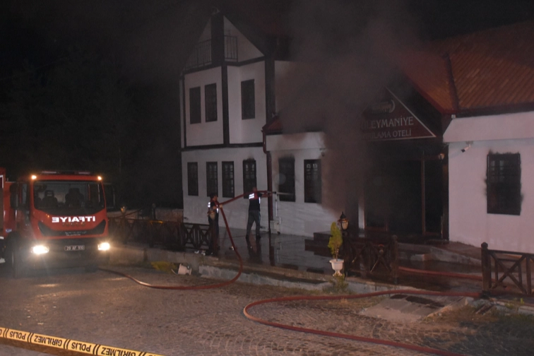 Kentin eski yerleşim yerlerinden Süleymaniye Mahallesindeki butik otelde henüz belirlenemeyen nedenle yangın çıktı.