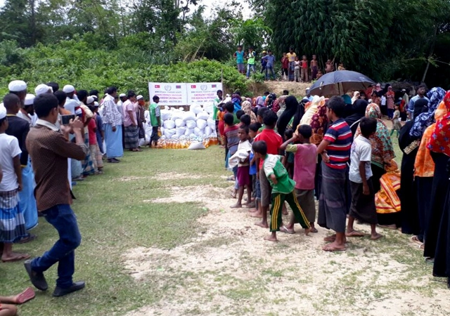 Myanmar'dan Bangladeş'e göç etmek zorunda kalanlardan bin'e yakın Arakanlı Rohingya aileye acil gıda dağıtımı yapıldı. Ayrıca her aileye 15 dolarlık bir nakdi yardımda bulunuldu.