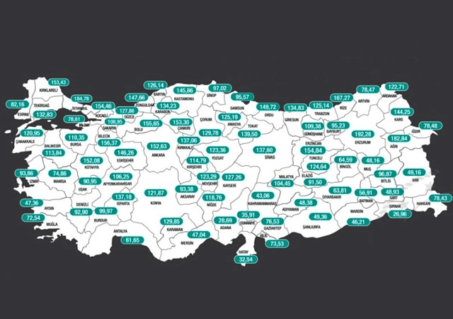 En çok vaka görülen il, 192,28 ile Erzurum oldu. Erzurum'u İstanbul, Ağrı, Rize ve Bilecik takip etti.