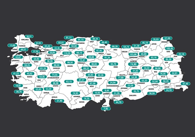 Haftalık verilere göre Bolu, Kars, Gümüşhane, Kütahya ve Ankara 100 bin kişide en çok, Hatay, Osmaniye, Adana, Edirne ve Mersin ise en az Covid-19 vakası görülen iller oldu.
