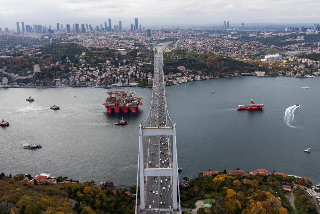 56 metre genişliğe ve 29 buçuk metre derinliğe sahip yüzer doğalgaz depolama tesisi, Karadeniz'e açılmak için İstanbul Boğazı'nı kullanacak.