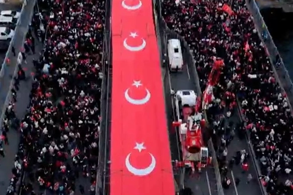 Kortejler eşliğinde ve bireysel olarak yürüyen vatandaşlar, Galata Köprüsü'ne ulaştı. Katılımcılar, polis kontrol noktalarından geçirilerek alana alınıyor.