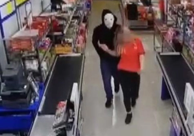Görüntülerde, gaspçı el yapımı maskeyle markete giriyor. Çalışanı silah doğrultarak etkisiz hale getiren gaspçı, poşete paraları doldurtuyor. Çalışan ise ellerini havaya kaldırıyor. Panikle kasayı açtığını görülüyor. Şahıs ardından kaçıyor. Başka bir görüntü de ise, gaspçı müşteriler varken içeriye giriyor. Şahsın silah doğrultmasıyla, müşteriler kaçarken çalışan ise ellerini ensesine koyarak eğiliyor. Paraları alan şahıs kaçıyor.