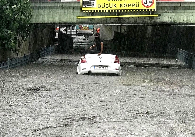 Yağışın etkisiyle Bayrampaşa'da bir alışveriş merkezinin önündeki alt geçidi su bastı. O sırada alt geçitte seyir halindeki bir otomobil, mahsur kaldı. Araçta bulunan yaşlı kadın ve bir kişi, yüzerek kendilerine ulaşan vatandaşlar tarafından kurtarıldı.