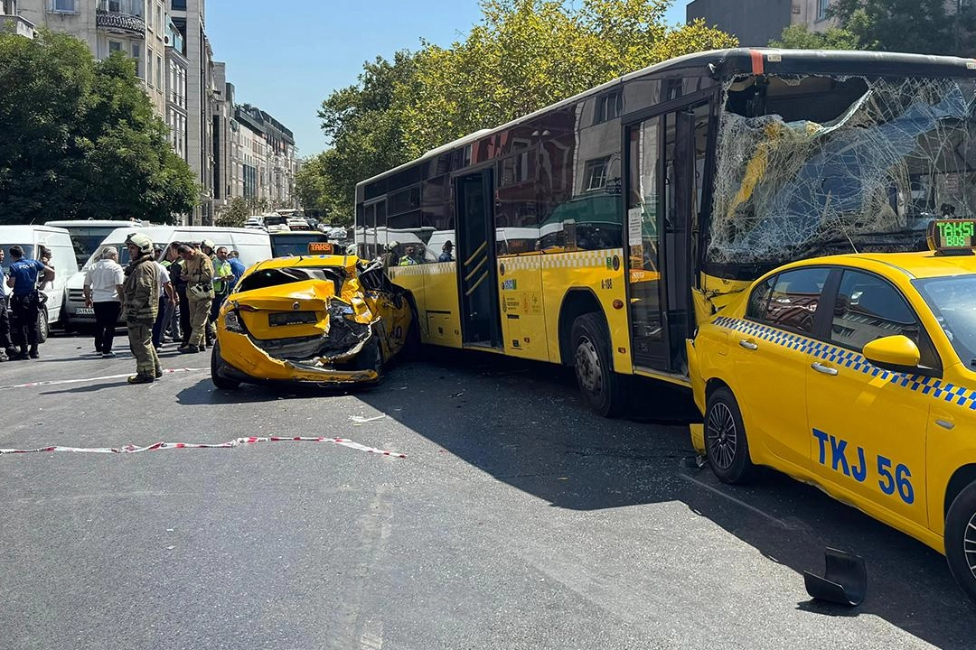 Tarlabaşı Bulvarı'nda seyreden 2 İETT otobüsü, 1 çöp kamyonu, 3 hafif ticari araç, 2 taksi ve 1 otomobil henüz belirlenemeyen bir nedenle çarpıştı.
