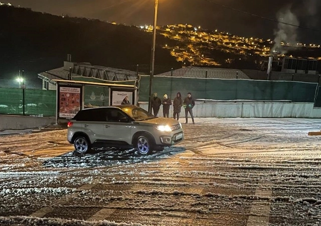 Çok sayıda vatandaşın da kar yağışı ve soğuk hava nedeniyle yolda ilerlemekte güçlük çektiği görüldü.