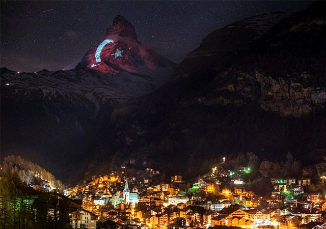 Zermatt Turizm Ofisinden yapılan açıklamada, koronavirüs ile mücadelede ülkelerle dayanışma amacıyla Türk bayrağının dağa yansıtıldığı bildirildi.