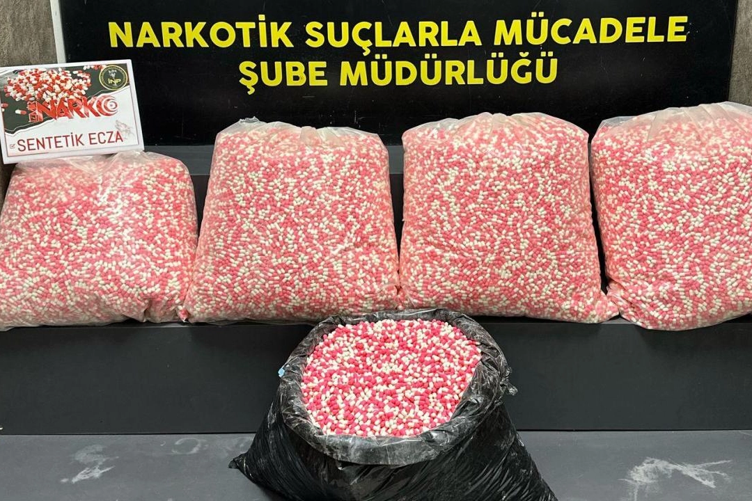 Araçtaki aramada, 160 bin 940 sentetik ecza hap ele geçirildi, sürücü B.T. gözaltına alındı.