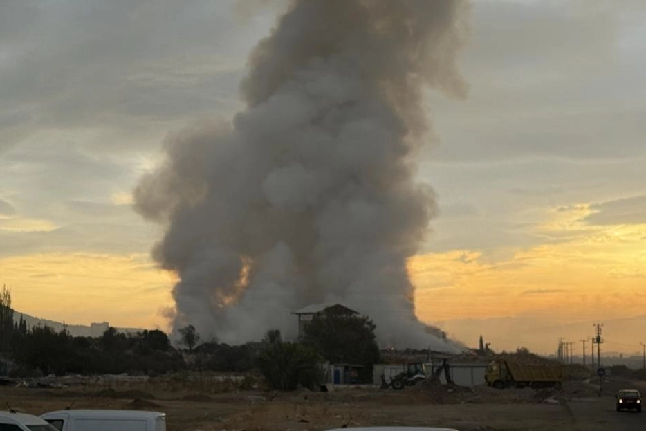 Yangın nedeniyle çıkan duman ve kötü koku ilçe merkezine kadar ulaştı.