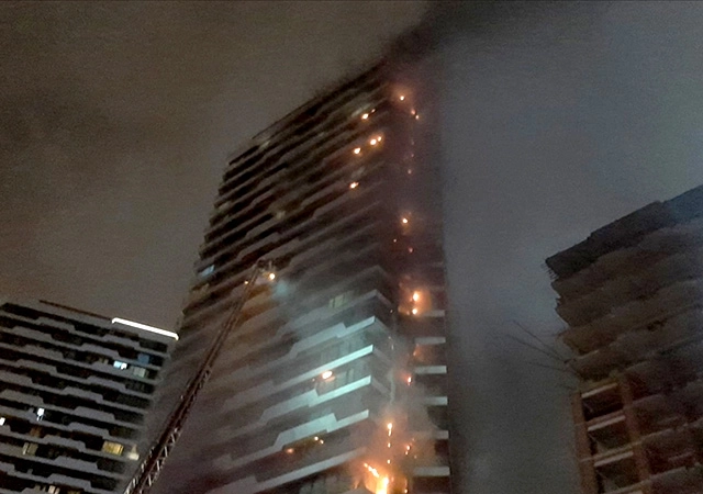 Alt katlarda başlayan yangın, kısa sürede dış cephe kaplaması üzerinden binanın en üst katına kadar ulaştı.
