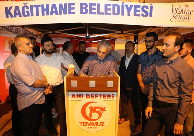 ''Tam 2 yıl önce ülkemizi bölmeye yönelik düzenlenen darbe girişimi, Sayın Cumhurbaşkanımız, Sayın Başbakanımız ve 80 milyonun cesareti sayesinde önlendi. Hain darbe girişimini unutturmayacağız. Hepsi layık olduğu cezayı alana dek davaların takipçisi olacağız. Bir kez daha şehitlerimize Allah'tan rahmet, gazilerimize acil şifalar diliyoruz. Kağıthaneli komşularımıza da o gece gösterdikleri azimli, kararlı ve cesaretli duruşlarından dolayı teşekkürlerimizi sunuyoruz. Allah vatanımızı ve milletimizi korusun.''