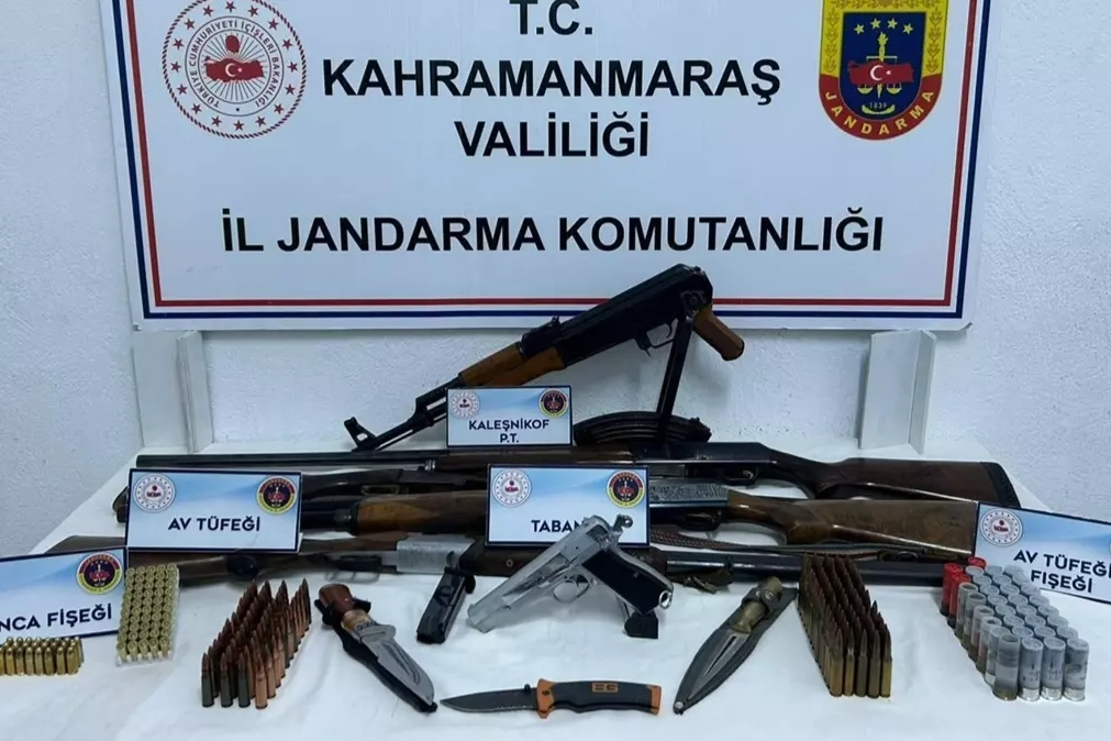Gözaltına alınan şüphelilerin ev ve araçlarında yapılan aramada, 1 kalaşnikof piyade tüfeği, 1 ruhsatsız tabanca, 3 av tüfeği, 155 mermi, 2 şarjör, 3 bıçak ve bir miktar uyuşturucu ele geçirildi.