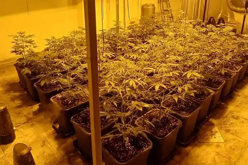 Aramada 117 kök kenevir, 76 gram esrar, 23 gram kokain, 3 klima, 3 vantilatör, 5 termometre, 4 hava nemlendirici, 34 litre bitki besleyici sıvı ve oksijen tüpü ele geçirildi.