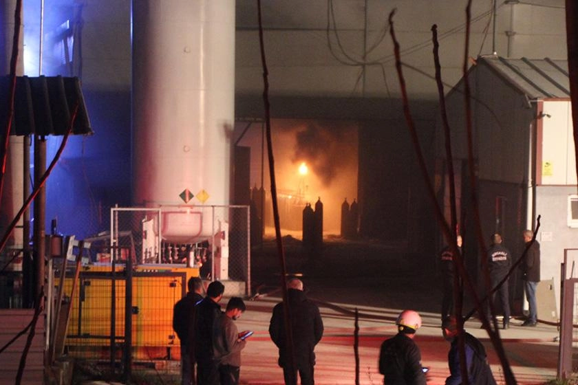 Asetilen tüplerinin dolumu sırasında hattan sızan gazın alev alması sonucu başlayan yangın, kısa sürede büyüdü.