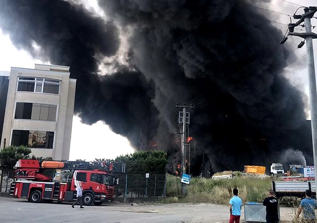 Alevlerin çevredeki fabrikalara sıçramaması için önlem alan itfaiye ekipleri, zaman zaman patlama sesleri de duyulan yangına güçlükle müdahalede bulundu.