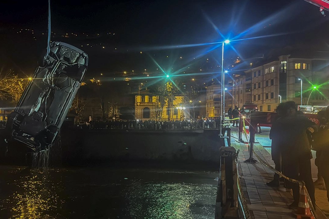 Sürücüsü henüz öğrenilmeyen otomobil, İstasyon Köprüsü korkuluklarına çarparak Yeşilırmak Nehri'ne düştü.