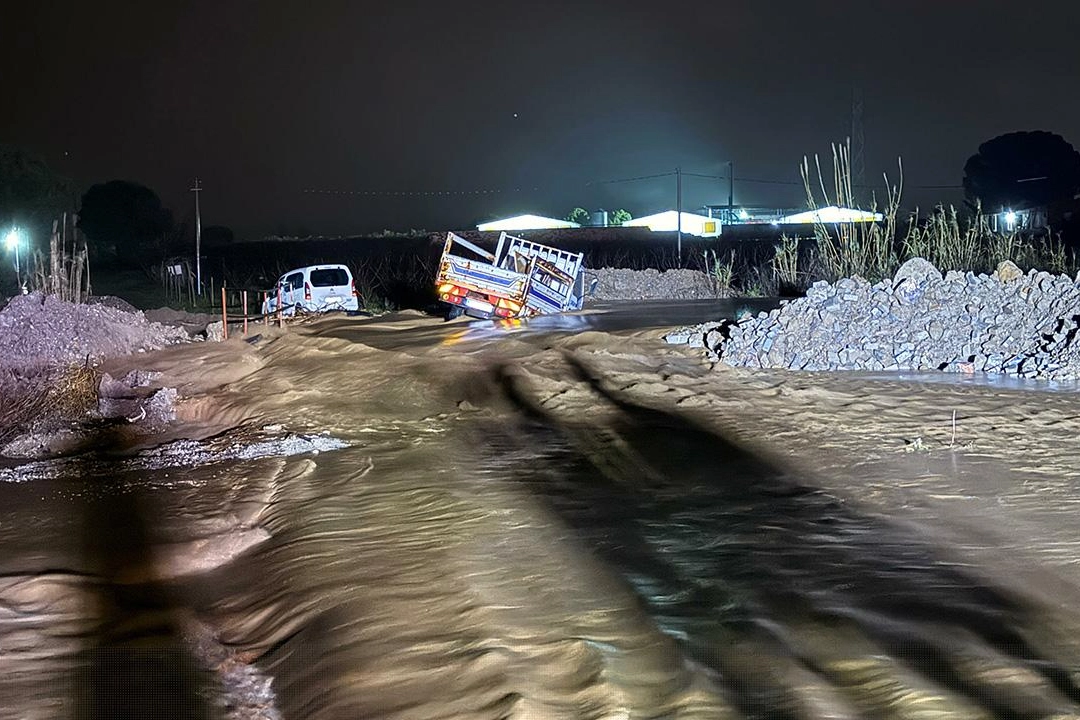 Araç sürücüleri, suyun hızla yükseldiğini fark ederek kendi imkanlarıyla araçlardan indi.