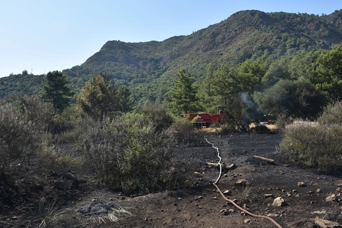 İhbar üzerine bölgeye Muğla Orman Bölge Müdürlüğüne ait hava ve kara araçları sevk edildi.