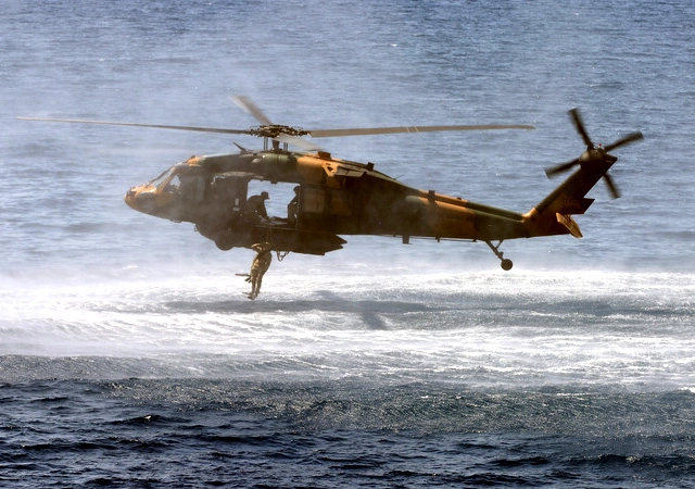 Mayın avlama gemisinin mayını tespitinin ardından emniyete alınan bölgeye helikopterle SAS timi sevk edildi. Helikopterden denize atılan SAS unsurları mayını imha etti.