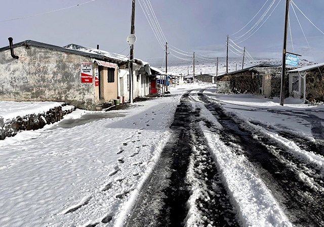 Erzurum'un yüksek kesimleri mevsimin ilk karıyla birlikte beyaza büründü.
