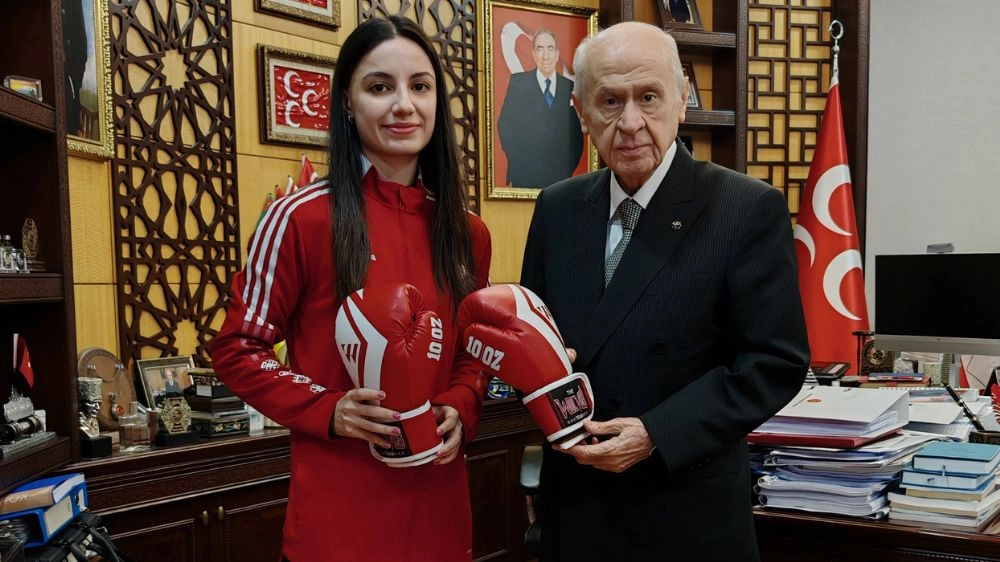 MHP'nin sosyal medya hesabından yapılan paylaşımda, ziyaret sırasında Kılınç'ın, Genel Başkan Bahçeli'ye boks eldivenlerini ve milli formasını hediye ettiği belirtildi.