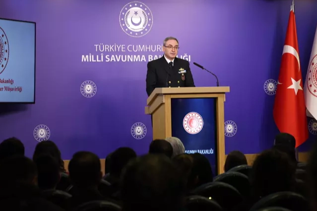 MSB Basın ve Halkla İlişkiler Müşaviri ve Bakanlık Sözcüsü Tuğamiral Zeki Aktürk, bakanlıkta düzenlenen haftalık basın bilgilendirme toplantısında konuştu.