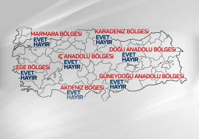 Araştırma 3 bölümden oluşuyor. İlk olarak referandumdaki tercihler, daha sonra partilere göre dağılımı ve ortaya çıkan rakamların bölgelere göre dağılımı grafiklerle gösteriliyor.