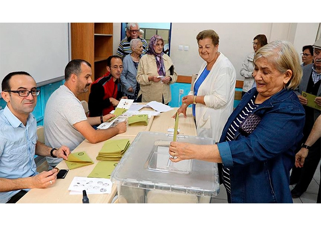 Türkiye, Cumhurbaşkanını ve 27. Dönem Parlamentosunun üyelerini belirlemek üzere sandık başında.Seçimde, yurt içinde toplam 56 milyon 322 bin 632 seçmen, 180 bin 65 sandıkta oy kullanacak. Yurt dışı seçmen kütüğün kayıtlı seçmenlerin 7 Haziran'da başlayan oy verme işlemi 19 Haziran'da tamamlandı. Yurt dışı seçmen kütüğüne kayıtlı seçmenler, bugün saat 17.00'ye kadar gümrük kapılarında oy verebilecek.Türkiye genelinde seçmenler, saat 08.00-17.00 saatleri arasında sandık başına gidecek. Ancak saat 17.00'ye geldiği halde, sandık başında oylarını vermek üzere bekleyen seçmenler, başkan tarafından sayıldıktan sonra sırayla oylarını kullanacak.Seçmenler, üzerinde Türkiye Cumhuriyeti Kimlik Numarası bulunan, kimliği tereddütsüz ortaya koyan, resimli, resmi nitelikteki belgelerden biriyle oy kullanılabilecek.