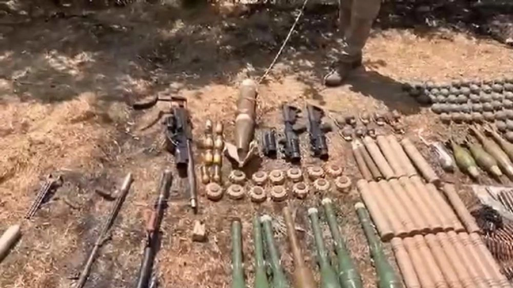 "6 çok namlulu roketatar mühimmatı, 8 tuzaklanmış havan mühimmatı, havan mühimmatına ait 12 taşıma kapsülü, 1 kutu makineli tüfek mühimmatı, çok miktarda yaşam malzemesi ve ekipmanı ile temizlik malzemesi."