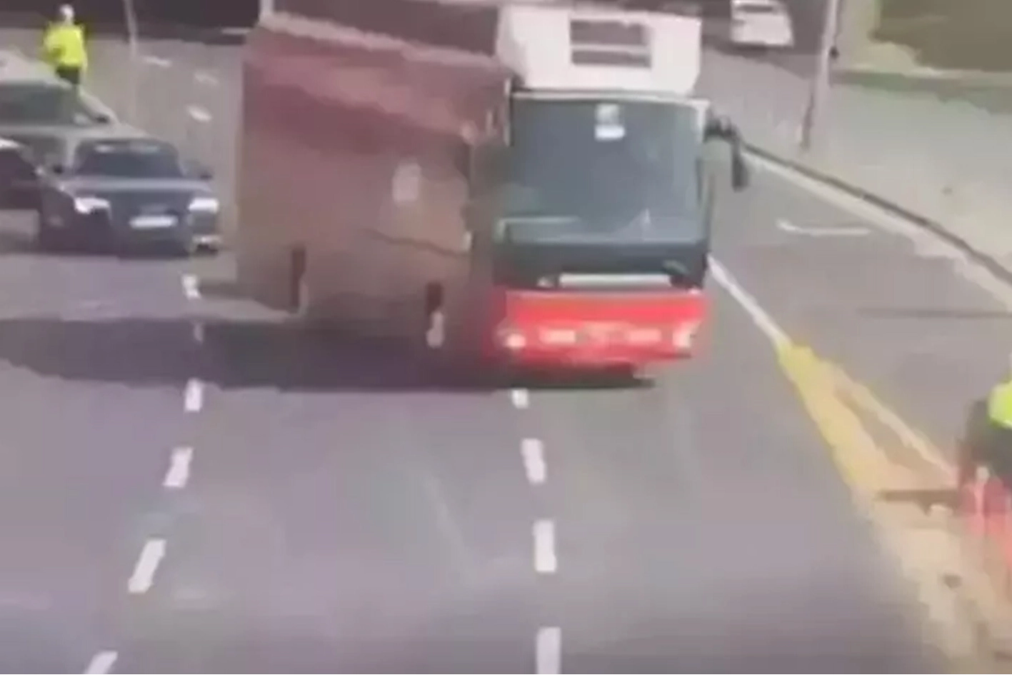 Adliye önünde görevli müşteki polis Mehmet Ö, elini kaldırarak ısrarla "dur" ihtarında bulunmasına rağmen araç durmadı. Mehmet Ö, otobüsün çarpmaması için yolun kenarına atladı.