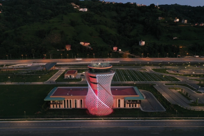 Rize'nin Pazar ilçesinde 100 milyon ton deniz dolgusu üzerine inşa edilen havalimanının 3 bin metre uzunluğunda ve 45 metre genişliğinde piste ve 7 uçak kapasiteli aprona sahip olduğunu ifade eden Uraloğlu, havalimanının çay bardağı temalı Hava Trafik Kontrol Kulesi, terminal binasındaki Çay Müzesi ve Karadeniz mimarisiyle sadece bir ulaşım noktası değil, aynı zamanda bölgenin sembol yapılarından biri olduğunu kaydetti.