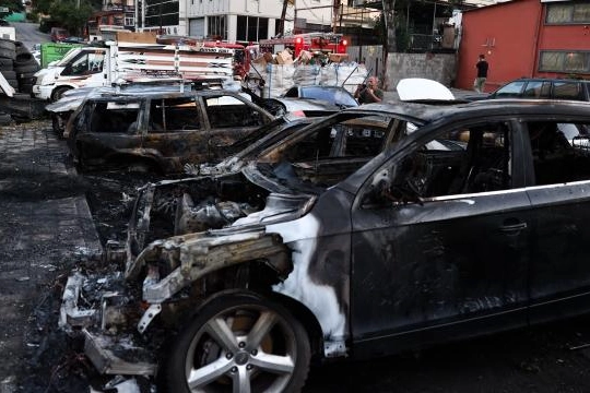 Kısa sürede büyüyen alevler, sanayi sitesinde tamir için bekleyen diğer otomobiller ile bir otelin açık otoparkındaki araçlara da sıçradı.