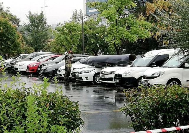 Park halindeki 2 otomobil ile 1 hafif ticari araçta hasar oluştu.