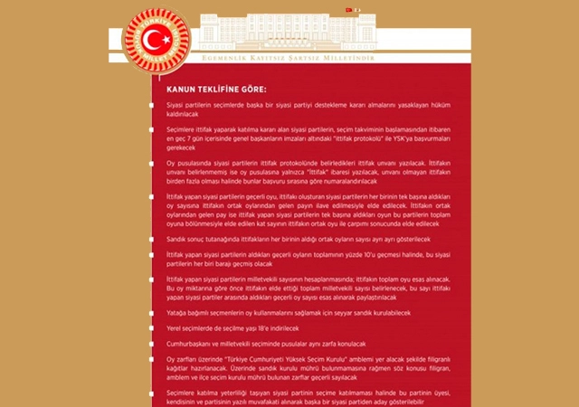 İŞTE DETAYLAR-Hazırlanan teklife göre; oy pusulasında isteyen partiler ortak logo ve adla aynı sütun içerisinde yer alabilecek.