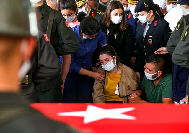 Şehidin babası Kenan Kıvık (53), annesi Ayşe Canal (43) ve kardeşleri Murat (19) ve Tarık Kıvık (16) ile Merve Kotuk (24) Türk bayrağına sarılı tabutun başında gözyaşı döktü.