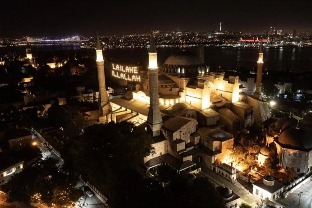 Ayasofya-i Kebir Camii'ne "la ilahe illallah" mahyası asıldı, Büyük Çamlıca Camisi'nin mahyasına da Türk bayrağı yansıtıldı. Büyük Çamlıca Camisi'nden sela sesi yükseldi, mahyasına Türk bayrağı yansıtıldı.