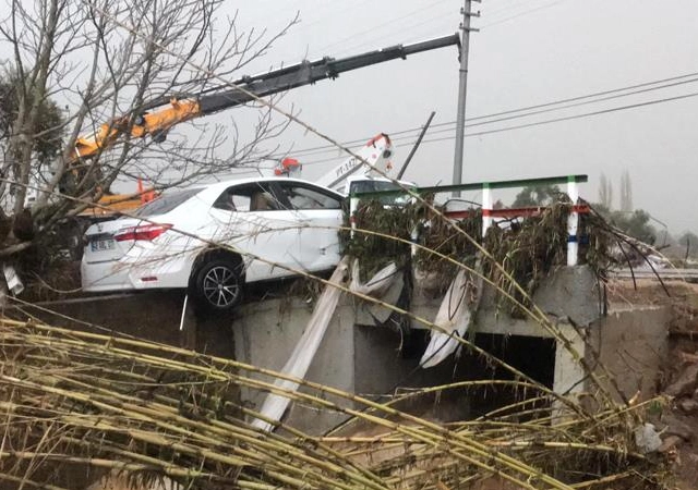 Bunun yanı sıra taşan dere sebebiyle çevredeki bir seranın yıkıldığı, tarım arazilerinin ise sular altında kaldığı gözlendi.