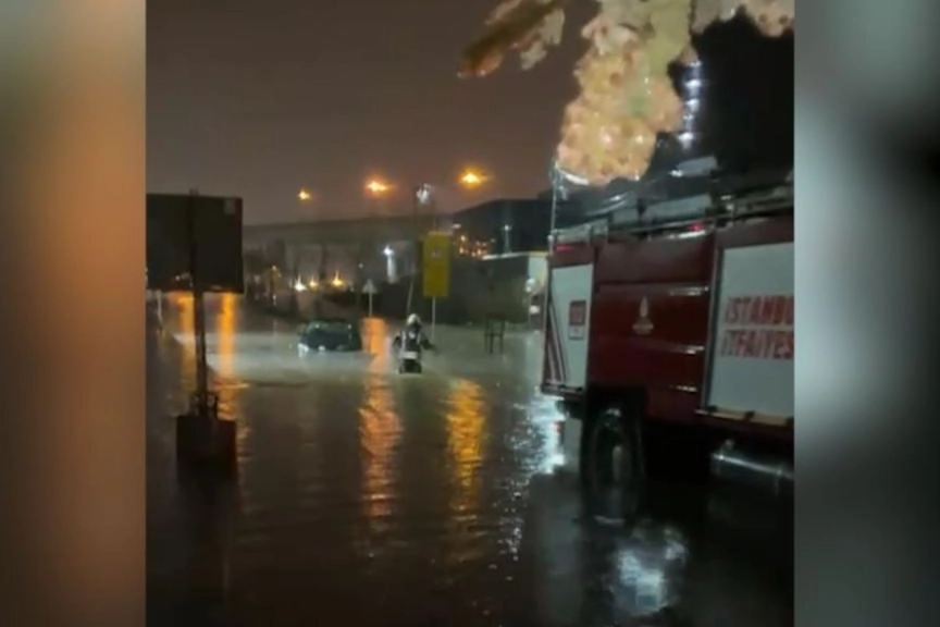 Bu sırada caddede ilerlemeye çalışan bazı araçlar suda mahsur kaldı. İki otomobilin bir kısmı suya gömülürken, araçtakiler de mahsur kaldı.