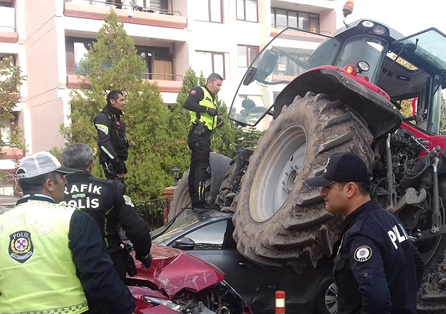 Polisin uyarısını dikkate almayan traktör sürücüsü, önündeki araçlara çarparak, Çankaya yönüne doğru ilerledi. TBMM'nin Çankaya kapısı önünde polisin uyarı ateşi açması da traktör sürücüsünü durduramadı.