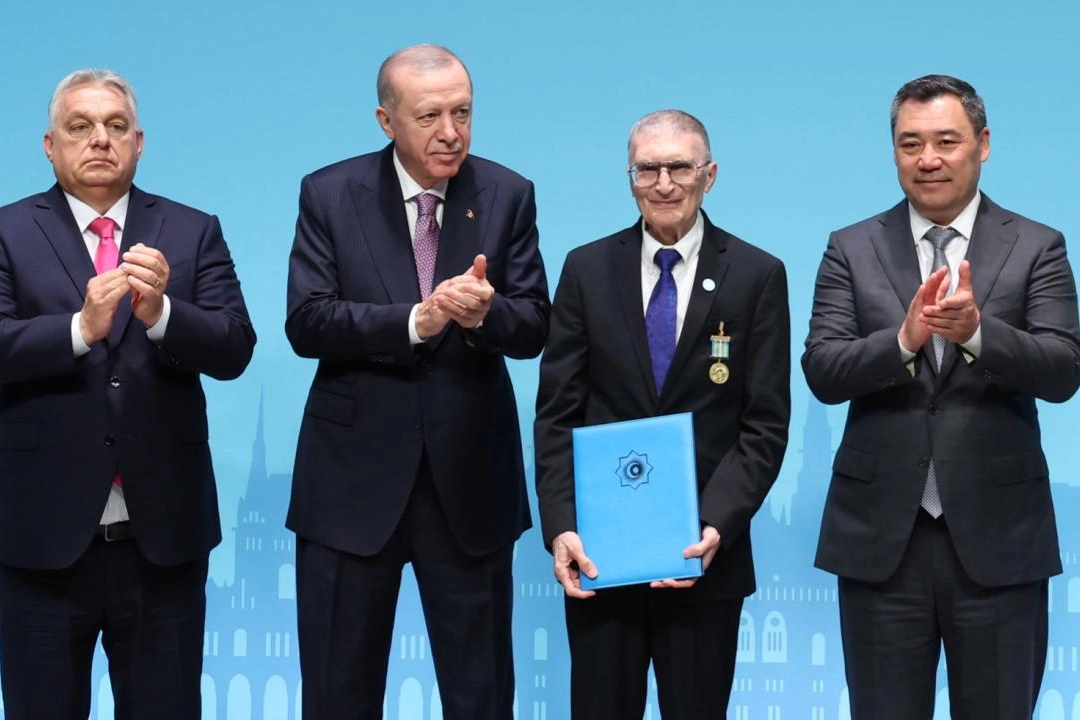 Erdoğan ile Orban, Türk dünyasında bilimsel çalışmalara üstün katkılarından dolayı ödül alan Sancar'ı tebrik etti.