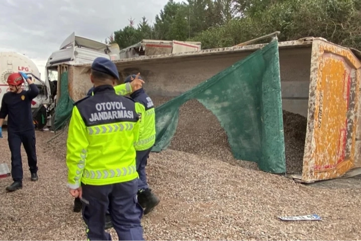 Edinilen bilgilere göre kazaya LPG tankeri ile biri mıcır yüklü iki tır ve bir otomobil karıştı. İhbar üzerine olay yerine itfaiye, sağlık ve polis ekipleri sevk edildi. Ekiplerin olay yerindeki müdahalesi sürerken, kazanın oluş nedenine ilişkin inceleme başlatıldı.