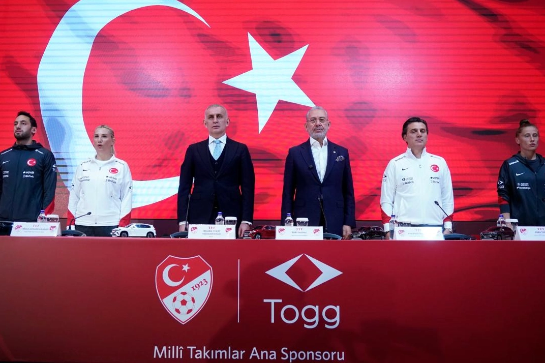 Türkiye Futbol Federasyonu'nun (TFF) Riva'da bulunan Hasan Doğan Milli Takımlar Kamp ve Eğitim Tesisleri'nde gerçekleştirilen imza törenine TFF Başkanı İbrahim Hacıosmanoğlu, Togg Yönetim Kurulu Başkanı Fuat Tosyalı, A Milli Erkek Futbol Takımı Teknik Direktörü Vincenzo Montella, A Milli Kadın Futbol Takımı Teknik Direktörü Necla Güngör Kıragası ile milli oyuncular Hakan Çalhanoğlu ve Ebru Topçu katıldı.