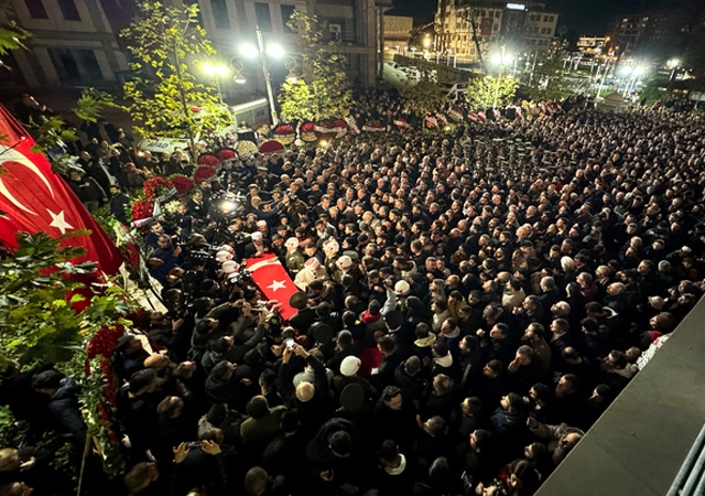 Şehidin Türk bayrağına sarılı naaşı kortej eşliğinde camiye getirilerek, katafalka konuldu, dua edildi.