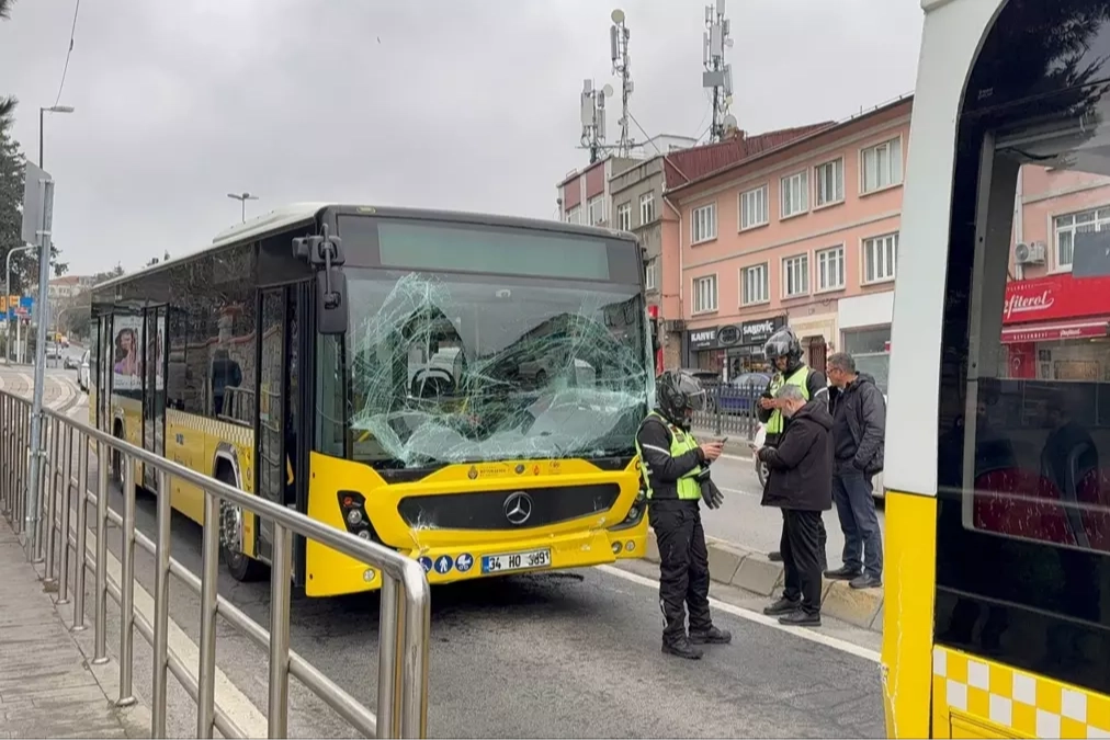 İETT'YE BAĞLI İKİ ÖZEL HALK OTOBÜSÜ DURAKTA ÇARPIŞTI