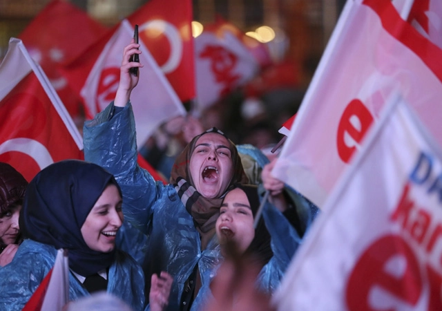 Vatandaşlar, "evet" kararını kutlamak için Cumhurbaşkanı Recep Tayyip Erdoğan'ın halk oylamasını takip ettiği Huber Köşkü'nün bulunduğu Tarabya'da bir araya geldi.