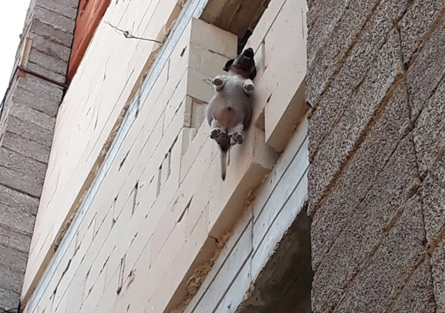 Olay, Tavas ilçe merkezindeki 5 katlı inşaat halindeki binanın üçüncü katında meydana geldi. Dün saat 14.00'te binanın üçüncü katındaki pencerenin dışında, boğazına bağlı iple asılı şekilde yavru sokak köpeğini gören çocuk, esnafa haber verdi. Olay yerine gelen ve yavru köpeği boğazından asılı şekilde gören esnaf, vicdansızlığa tepki gösterdi.