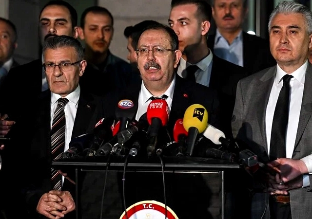 Yüksek Seçim Kurulu (YSK) Başkanı Ahmet Yener, YSK önünde basın mensuplarına Cumhurbaşkanı ve 28. Dönem Milletvekili Genel Seçimi'nde açılan sandık sonuçları ve oy oranlarına ilişkin açıklama yaptı.