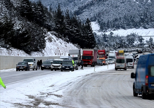 ARAÇLAR, KARLI YOLLARDA GÜÇLÜK ÇEKİYOR