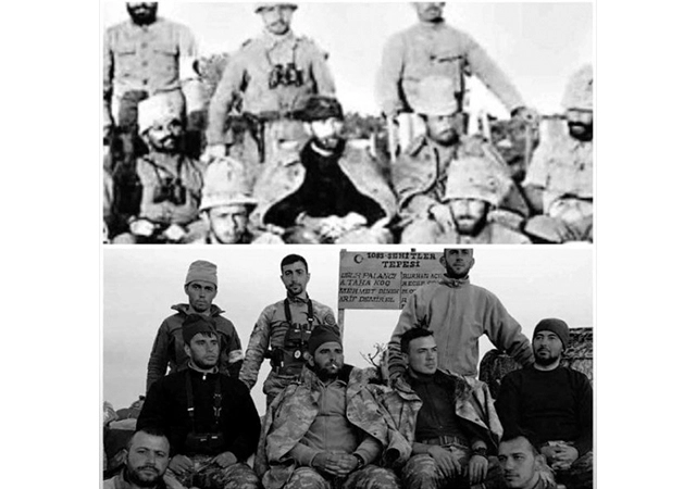 ASKERDEN ATATÜRK POZLARIHarekata katılan Mehmetçik, Türkiye Cumhuriyeti'nin kurucusu Mustafa Kemal Atatürk'ün cephede savaşırken çekilen fotoğraflarındaki pozları vererek Ata'sına selam yolluyor.