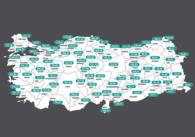 Sağlık Bakanı Fahrettin Koca, sosyal medya hesabından, il bazında her 100 bin nüfusa karşılık gelen Covid-19 vaka sayılarının yer aldığı haritayı paylaştı.